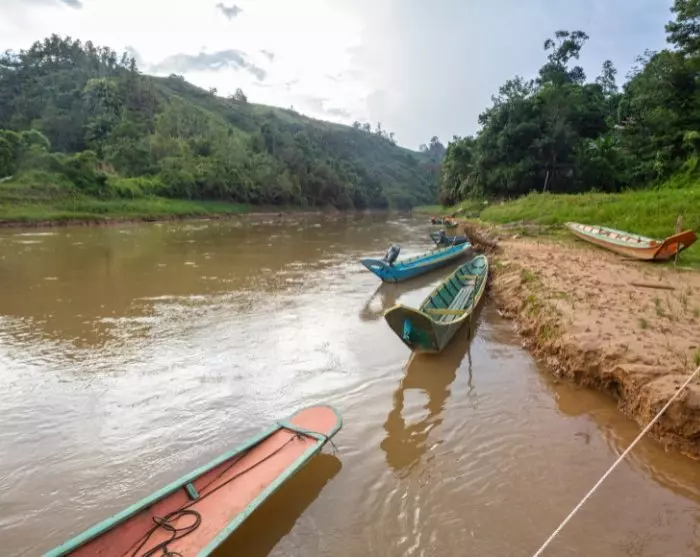 Für Ihren Aufenthalt im Regenwald müssen Sie nicht viel packen. Wählen Sie einen leichten Rucksack oder eine kleinere Tasche und lassen Sie Ihren Koffer im Hotel. Von dort werden Sie abgeholt und fahren etwa 5 Stunden in Richtung Batang Ai Nationalpark, mit einem Zwischenstopp am Lachau Bazaar, wo Sie zwischen kleinen Geschäften und auf einem malerischen lokalen Markt schlendern können. Genießen Sie ein frühes Mittagessen in einem der gemütlichen lokalen Cafés, bevor es weiter zum Batang Ai-See geht. Hier steigen Sie in ein traditionelles Langboot, das Sie weg von der Zivilisation zum Flusshaus des Iban-Stammes bringt, wo selbst Mobilfunksignale der unberührten Natur weichen. Die Bootsfahrt dauert etwa 1,5 Stunden.