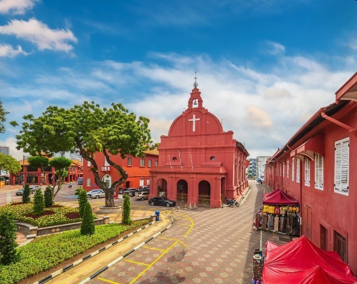 Als nächstes führt die Tour zum bezaubernden Dutch Square, umgeben von blühenden Gärten, schmiedeeisernen Laternen und den ikonischen rotbemalten Gebäuden, die jedem sofort ins Auge fallen. Hier können Sie die 300 Jahre alte Dutch Church besuchen, Malaysias älteste protestantische Kirche.