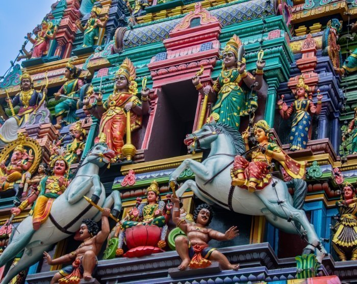 Der Rundgang führt danach zum ältesten hinduistischen Tempel Kuala Lumpurs, dem Sri Maha Mariamman, der 1873 gegründet wurde. Im Herzen Chinatowns gelegen, ist er bekannt für seine beeindruckende Architektur und reiche Verzierung. Das Gopuram (Eingangstor) des Tempels ist das auffälligste Merkmal, das majestätisch mit kunstvollen Skulpturen hinduistischer Gottheiten emporragt.