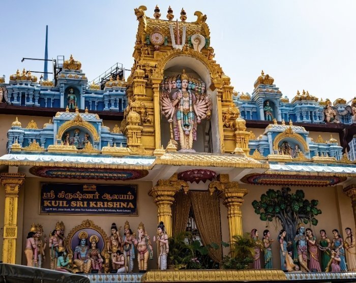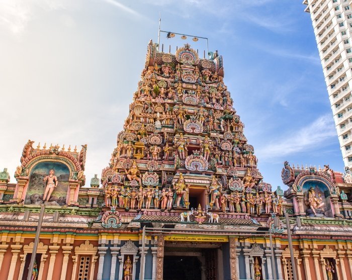 Anschließend besuchen Sie den Sri Kandaswamy Tempel, der im frühen 20. Jahrhundert erbaut wurde und Lord Murugan gewidmet ist. Der Tempel ist für seine beeindruckende Architektur bekannt und kombiniert traditionellen südindischen Stil mit farbenfrohen und detaillierten Dekorationen. Der Tempel ist ein friedlicher und spiritueller Ort, der Ihnen einen tiefen Einblick in die Traditionen und Praktiken des Hinduismus gibt.Wenn Sie möchten, können Sie an einem Gebet teilnehmen.