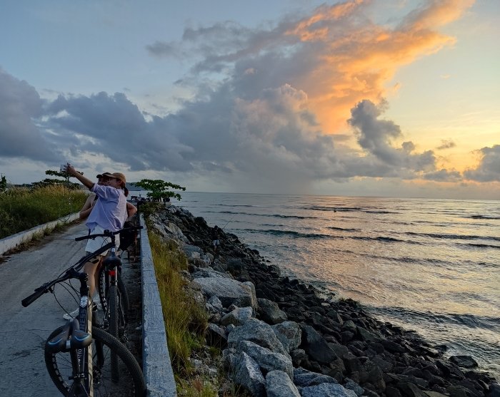 Sie werden von Ihrem Hotel abgeholt und in das kleine Fischerdorf Kuala Teriang an der Westküste Langkawis gebracht. Dort erhalten Sie einen Fahrradhelm und Ihr Fahrrad wird für Sie perfekt angepasst. Nach einer kurzen Einführung beginnt das Radabenteuer. Fahren Sie auf kleineren Wegen, umgeben von atemberaubender Landschaft, vorbei an der majestätischen Mat Cincang-Bergkette, die im Hintergrund aufragt, an grünen Reisfeldern, Obstplantagen, bunten Gärten und hübschen Fischereihäfen.