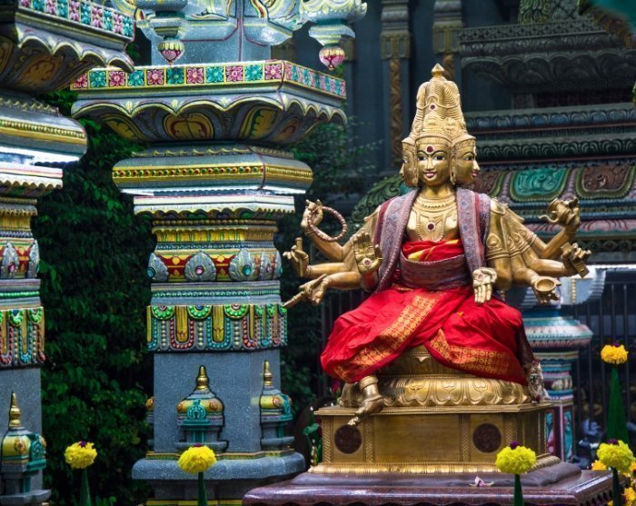 Die Tour geht danach weiter in Chinatown weiter und führt zum nahegelegenen Hindu-Tempel Sri Maha Mariamman. Es ist Malaysias ältester Hindu-Tempel, und er beeindruckt mit seinem farbenfrohen, kunstvollen Gopuram (Eingangsturm), der von detaillierten Figuren hinduistischer Götter geschmückt wird.