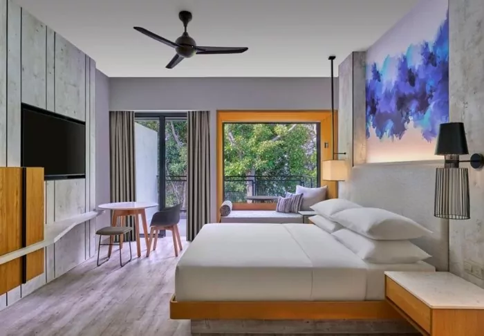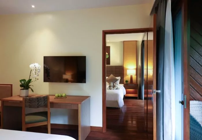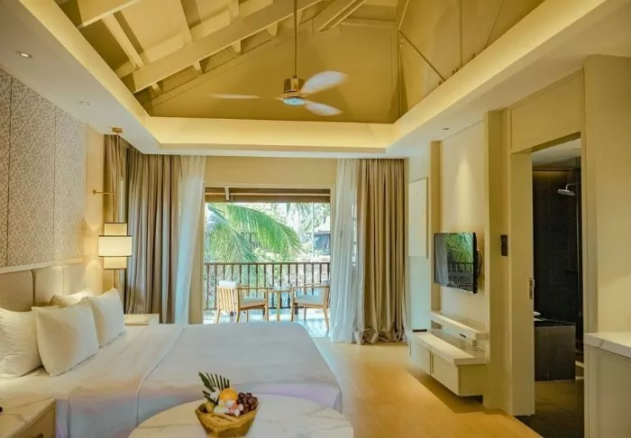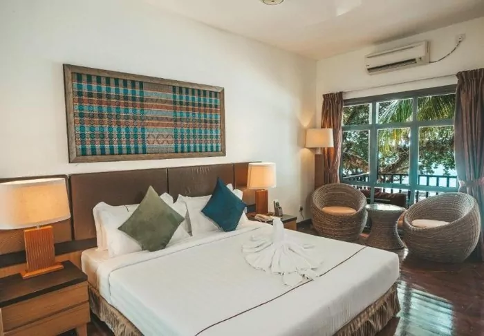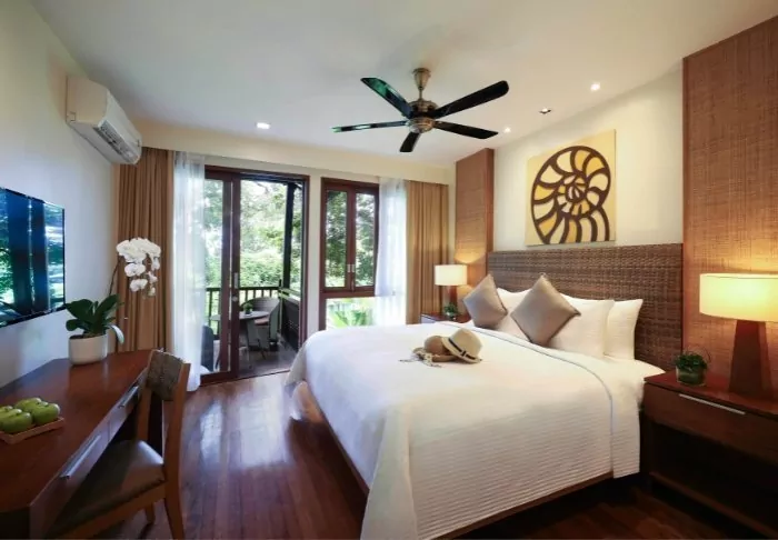 Sie übernachten in einem der 42 m² großen Deluxe-Zimmer des Resorts, die mit Klimaanlage, TV, WLAN, Kaffee- und Teestation, Minibar und kostenlosem Mineralwasser ausgestattet sind. Das geräumige Badezimmer bietet Pflegeprodukte sowie Bademantel und Hausschuhe. Auf Ihrem privaten Balkon können Sie in die tropische Umgebung des Resorts eintauchen, während Sie vielleicht in einem guten Buch versinken.