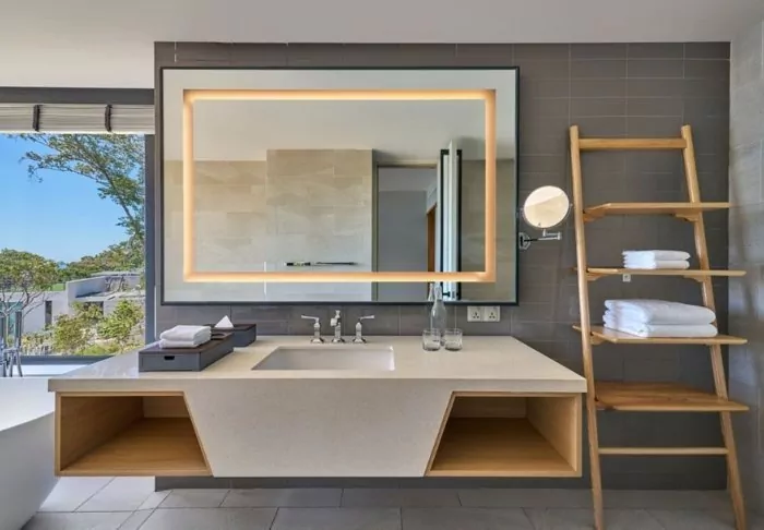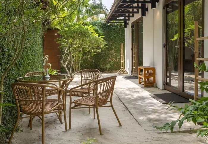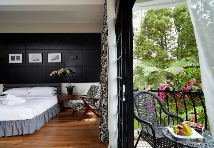 Die Räume sind groß (min. 44,6 m2) und mit Holzfußböden und Mahagonimöbeln ausgestattet, die für eine natürlich warme Atmosphäre sorgen, während frische Orchideen den Weiß-, Schwarz- und Grautönen ein wenig Farbe verleihen. Die großzügigen Fenster der Räume schaffen eine harmonische Verbindung zur Natur und eröffnen einen malerischen Ausblick auf die üppig grüne Umgebung.