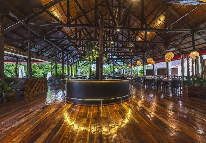 Wenn es dunkel geworden ist, können Sie den Tag mit einem Drink in der stimmungsvollen Bar des Resorts ausklingen lassen, bevor Sie sich in Ihre Lodge zurückziehen, um zu den nächtlichen Klängen der Tiere des Regenwaldes einzuschlafen.