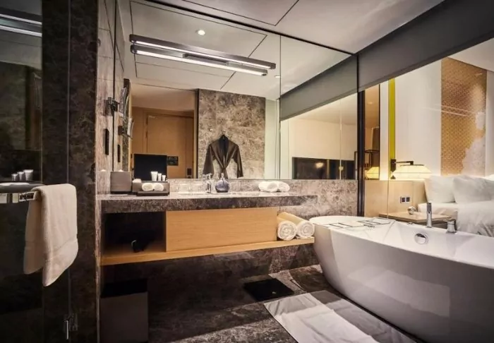Das EQ bietet eine Vielzahl an Annehmlichkeiten für einen komfortablen Aufenthalt: nehmen Sie ein erfrischendes Bad im beeindruckenden Infinitypool mit Stadtblick oder gönnen Sie sich eine Behandlung im exklusiven Spa des Hotels. Für diejenigen, die auch während ihrer Reise fit bleiben möchten, steht ein gut ausgestattetes Fitnesscenter zur Verfügung.