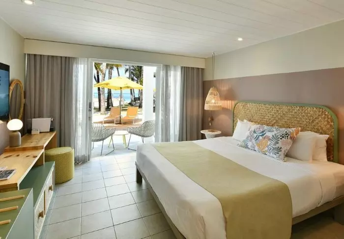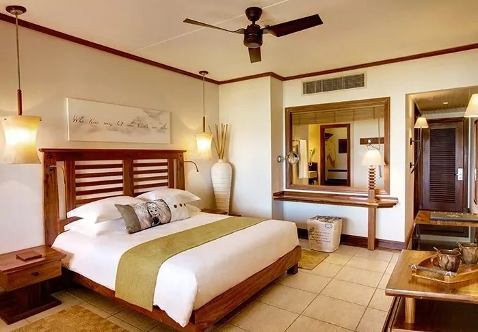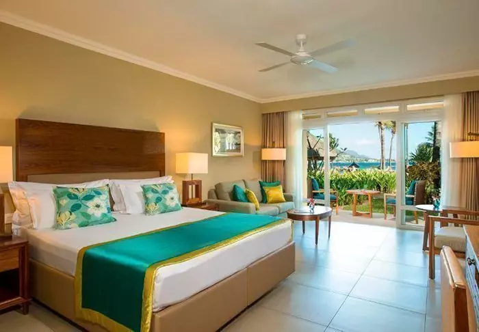 Die Zimmer sind groß, geräumig und in mauritischem und asiatischem Stil eingerichtet, entweder mit Balkon oder mit Terrasse. Alle Zimmer liegen in Richtung Meer. Die Zimmer sind alle mit Klimaanlage, Minibar, Tee- und Kaffee-Ecke, Flachbildschirm-TV-Gerät und allem anderen, was man von einem Fünf-Sterne-Resort erwarten kann, ausgestattet. Es gibt im ganzen Hotel gratis WLAN.