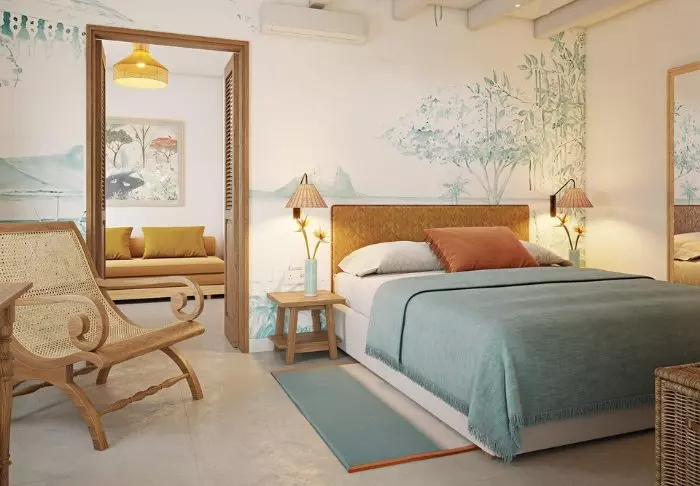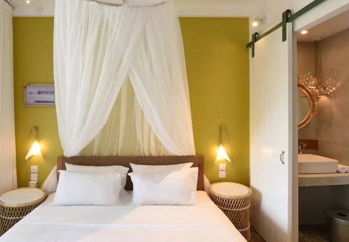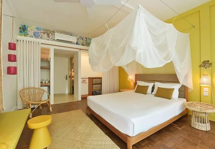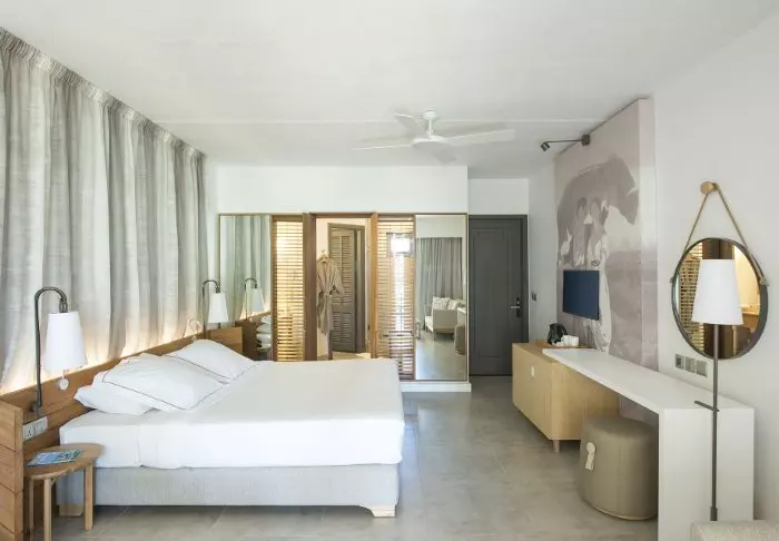 Das Hotel verfügt über 116 Zimmer, die alle über eigene Badezimmer, Klimaanlage, Möglichkeiten zur Tee- und Kaffeezubereitung, Minibar und kostenloses WLAN verfügen. Die Zimmer sind sehr charmant, mit geschmackvollen Farben, die sowohl einladend und modern als auch retro wirken. Alle Zimmer verfügen über einen privaten Balkon oder eine Terrasse. Jedes Zimmer ist außerdem mit einem „Strandset“ ausgestattet, das einen Korb mit Handtüchern und Strandmatten und sogar Ihre eigene Kühltasche umfasst.