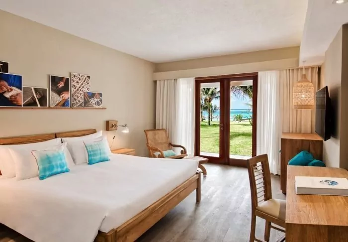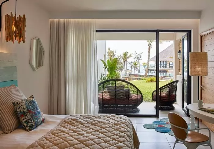 Die „Prestige“-Zimmer im Südflügel sind farbenfroh und mit viel Persönlichkeit dekoriert, während die etwas größeren „Deluxe“-Zimmer im Nordflügel etwas gedämpfter und luxuriöser sind. Das All-inclusive-Konzept umfasst eine Minibar auf dem Zimmer, die täglich mit Bier, Erfrischungsgetränken und Wein (falls gewünscht) aufgefüllt wird, zusätzlich zu allen Mahlzeiten des Tages. Auch in Bezug auf das Essen hebt sich C Mauritius ab (und zwar positiv, wenn Sie uns fragen). Sie können z. B. zur Mittagszeit Ihr Essen und ein kaltes Bier im Selbstbedienungsrestaurant des Hotels abholen und mit zum Strand nehmen oder auf Ihrem Balkon essen. Kein Grund, sich umzuziehen und auf einen Kellner zu warten – es sei denn, Sie möchten das gerne, denn das ist natürlich auch möglich!