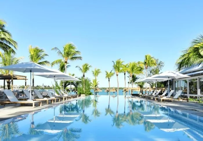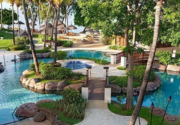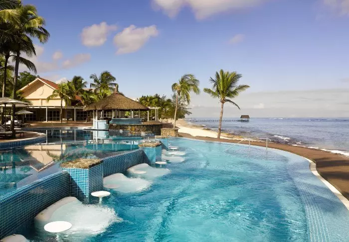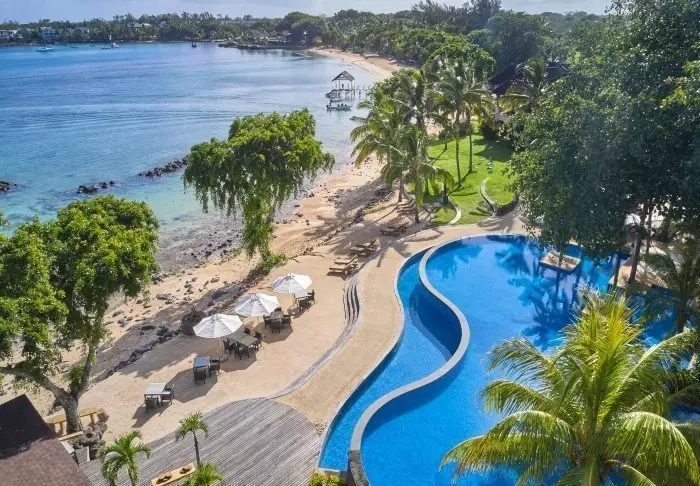 Nahe dem Zentrum des Hotelkomplexes befindet sich ein großer Pool mit Blick auf den Strand und das Meer. Das Hotel verfügt außerdem über einen eigenen Bootsanleger, von dem aus Ausflüge zum Blue Marine Park und zum Naturreservat Île aux Aigrettes angeboten werden (zusätzlich buchbar).