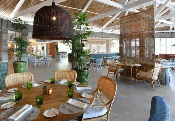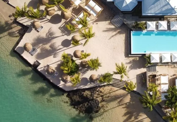 Das Hotel selbst ist mit seinem modernen Kolonialstil sehr charmant. Grünpflanzen, Fensterläden aus Holz, Bambusmöbel und helle Farben prägen das Interieur sowohl in der Lobby als auch im Restaurant. Der lange Infinity-Pool befindet sich mitten im Resort, während die hübsche Strandbar und das Restaurant den Strand und die Bucht überblicken. Direkt unterhalb der Strandbar befindet sich das „Bootshaus“, in dem Sie Kajaks oder Paddle Boards ausleihen können. Von hier aus können Sie auch mit dem kostenlosen Wassertaxi ins Zentrum von Grand Baie fahren. Mit vollem Bauch – oder vollen Einkaufstüten – sind Sie später in weniger als 15 Minuten im Hotel zurück.