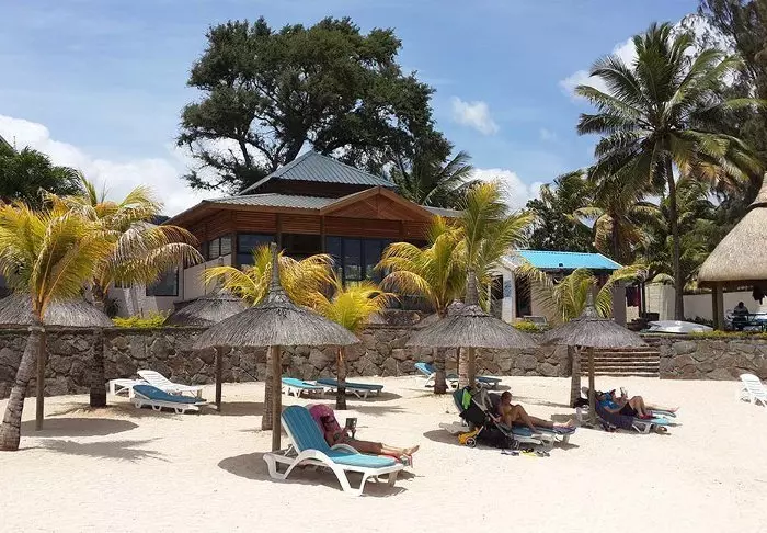 Der Strand direkt auf der anderen Straßenseite ist öffentlich. Das Beste, was Sie tun können, ist ein gepacktes Mittagessen und kalte Getränke in Ihrer Kühltasche mitzunehmen, die Strandmatten auszupacken, sich im Halbschatten hinzulegen und das zu tun, was auch die Einheimischen tun: Strandtennis spielen, schwimmen, ein Buch lesen oder schnorcheln gehen – und im Allgemeinen einfach das lokale Leben genießen. An Wochenenden ist der Strand bei den Einheimischen sehr beliebt. Die Kinder spielen, die Teenager kichern, und junge Leute trinken Bier und hören Musik. Darauf müssen Sie also vorbereitet sein. Andererseits ist es definitiv eines der authentischsten Stranderlebnisse auf Mauritius.