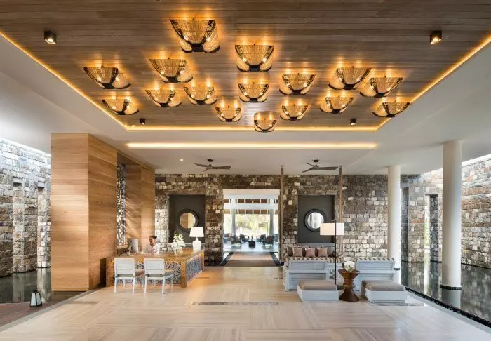 Bei der Ankunft im Veranda Pointe Aux Biches werden Sie mit einem Fußbad empfangen. Weg mit den Schuhen und hinein in die Wanne, sodass Sie wirklich erleben können, was „Barefoot Bliss“ bedeutet. Der Boden in der Rezeption besteht aus Sand, ebenso der Boden in der Bar und dem Restaurant. Sie machen ja schließlich Strandurlaub.