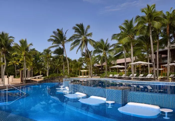 Es gibt drei Zimmerkategorien, und dank des genialen Layouts des Hotels sind Sie nie weit vom Wasser entfernt, egal ob es sich um einen Pool oder das Meer handelt.