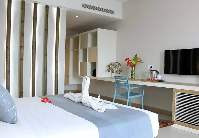 Die „Comfort“-Zimmer befinden sich am weitesten vom Strand entfernt, aber dafür in unmittelbarer Nähe des Pools, während die „Comfort Beachfront“-Zimmer – wie ihr Name schon sagt – nahe am Strand liegen. Zwischen den beiden befinden sich die „Comfort Seaview“-Zimmer. Alle Zimmerkategorien haben die gleiche Größe – nur in unterschiedlicher Lage. Die Zimmer im Erdgeschoss verfügen alle über eine kleine Terrasse, während die Zimmer in der ersten und zweiten Etage über Balkone verfügen.