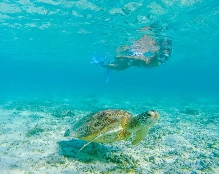 Cozumel ist eigentlich am berühmt für ihr reiches Leben unter der Meeresoberfläche, und Sie können sich auf ein einzigartiges Tauch- oder Schnorchelerlebnis mit Korallen, tropischen Fischen, Rochen und vielleicht sogar Meeresschildkröten freuen. Von Playa del Carmen aus verkehrt mehrmals täglich eine Fähre nach Cozumel. Die Überfahrt zur Insel dauert etwa 45 Minuten.