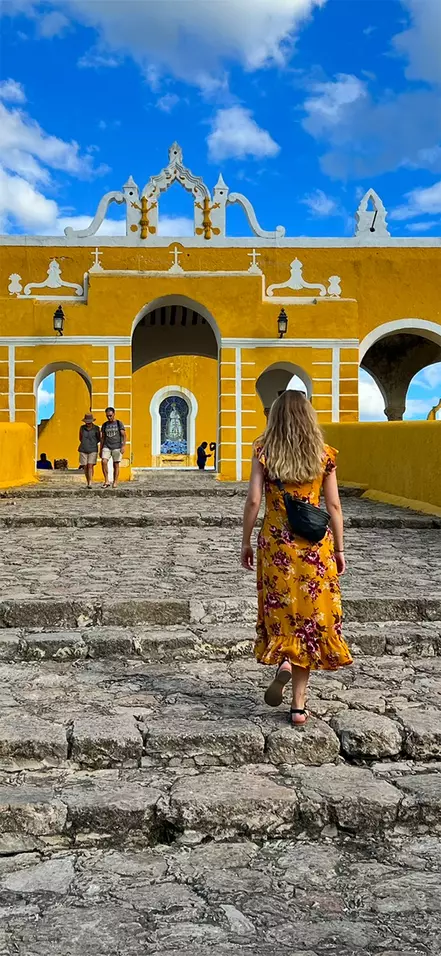 Nach einer kleinen Mittagspause (Mittagessen inbegriffen) geht es weiter nach Izamal – auch als die Gelbe Stadt bekannt.