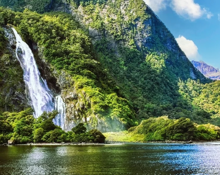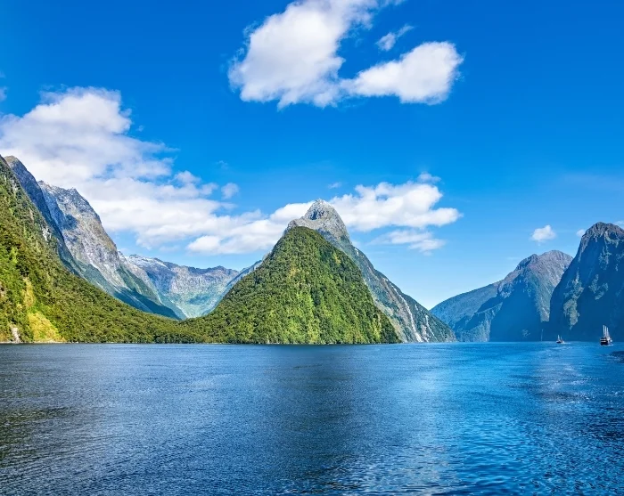 Am Milford Sound angekommen, unternehmen Sie eine etwa zweistündige Schifffahrt auf dem Fjord. Sie erleben die spektakuläre Natur hautnah mit senkrechten Felswänden, rauschenden Wasserfällen und dichtem Regenwald. Mit etwas Glück entdecken Sie Delfine oder neuseeländische Seebären, die sich auf den Felsen sonnen. Ein engagierter Natur-Guide an Bord vermittelt während der Fahrt sein umfangreiches Wissen über die Umgebung.