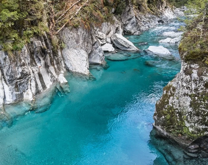 Der erste Halt ist bei der spektakulären Hokitika Gorge, die für ihr türkisblaues Wasser und den dichten, einheimischen Wald bekannt ist. Hier haben Sie Gelegenheit, Fotos zu machen und die ruhige Natur zu genießen.