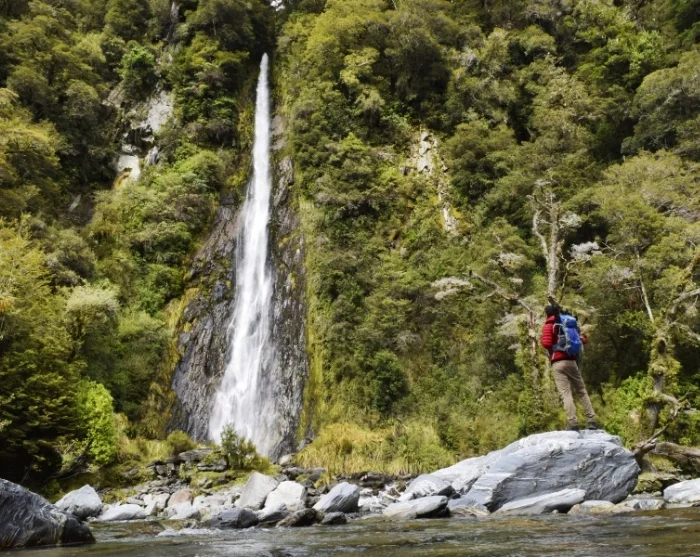 Von Queenstown folgen Sie zunächst dem Ufer des malerischen Lake Wakatipu und fahren weiter durch die dramatische Landschaft der Devil’s Staircase. Ihre Route führt durch die idyllische Stadt Te Anau und hinein in den Fiordland-Nationalpark, wo sich die Landschaft ständig verändert. Unterwegs erwarten Sie weite Gletschertäler wie das Eglinton Valley, spiegelglatte Seen wie die Mirror Lakes, tiefe Flusstäler wie der Hollyford River und dichte Wälder. Es gibt zahlreiche Möglichkeiten, an den schönsten Aussichtspunkten anzuhalten und Fotos zu machen.