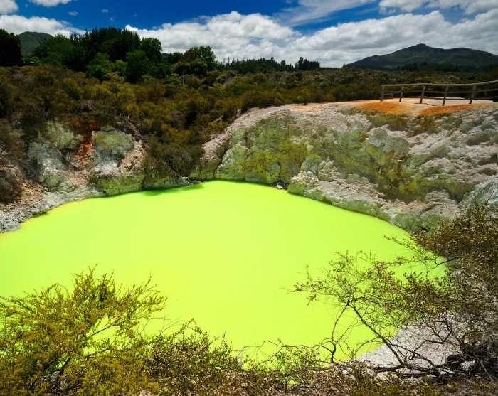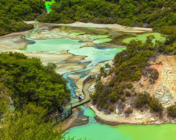 Hier können Sie unter anderem den fast unwirklich wirkenden Champagne Pool mit seinem orangefarbenen Rand und der brodelnden Oberfläche erleben, ebenso wie farbenfrohe Kraterseen und dampfende Pfade, die Sie durch eine Landschaft führen, die wie von einem anderen Planeten wirkt. Und ja – es riecht hier nach Schwefel, doch das gehört zum Erlebnis dazu.