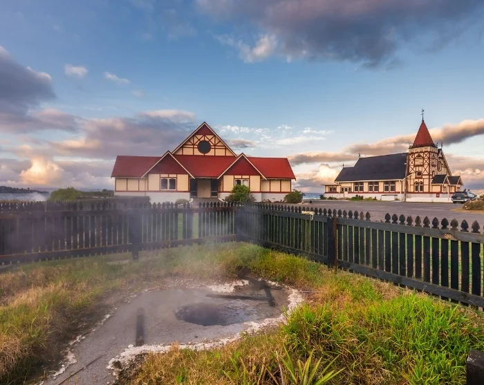 Rotorua befindet sich auf einer aktiven Vulkanzone, und die Kraft der Natur ist hier überall deutlich spürbar – blubbernde Schlammpools, eindrucksvolle Geysire und schwefelhaltiger Dampf, der aus dem Boden aufsteigt. Die Stadt ist außerdem bekannt für ihre enge Verbindung zur Māori-Kultur sowie für einzigartige Wellness-Erlebnisse.