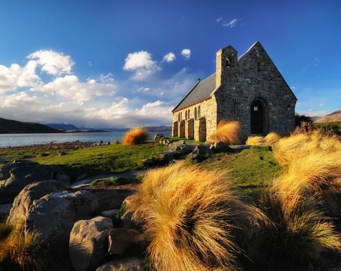 Von Christchurch aus fahren Sie durch die sanft geschwungenen Canterbury Plains weiter in Richtung Hochland und auf die schneebedeckten Südalpen zu. Unbedingt einplanen sollten Sie einen Stopp am Lake Tekapo (Takapō), der für sein kristallklares, türkisfarbenes Wasser und die malerische Steinkirche Church of the Good Shepherd bekannt ist.