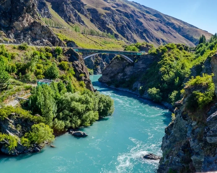Von hier geht es weiter durch das goldene Hochland, vorbei an Omarama, bevor sich die Straße über den Lindis Pass schlängelt – eine beeindruckende Berglandschaft mit sanften Hügeln bis zum Horizont. Der nächste Halt kann Cromwell sein, das im Herzen eines der bedeutendsten Weinanbaugebiete Neuseelands liegt. Anschließend fahren Sie weiter gen Süden durch die dramatische Kawarau-Schlucht, in der sich der Fluss durch die Felsformationen windet. Unterwegs besteht die Möglichkeit, das Goldfields Mining Centre zu besichtigen und Gold zu waschen oder an der Kawarau-Brücke einen Stopp einzulegen, wo wagemutige Besucher Bungee-Jumping ausüben.