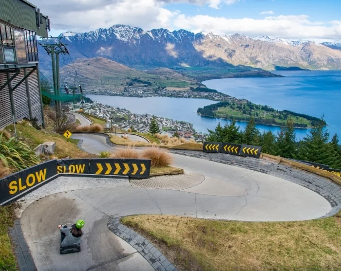 Ein echtes Highlight ist die Fahrt mit der historischen Gondelbahn hinauf zum Bob’s Peak. Von hier aus genießen Sie einen spektakulären Blick auf den Lake Wakatipu und die dahinterliegenden Berge, an deren Horizont besonders die Remarkables ins Auge stechen. Auf dem Gipfel können Sie ein Mittagessen genießen oder sich auf der spaßigen Sommerrodelbahn – einer Art Schlitten auf Rädern – ausprobieren.