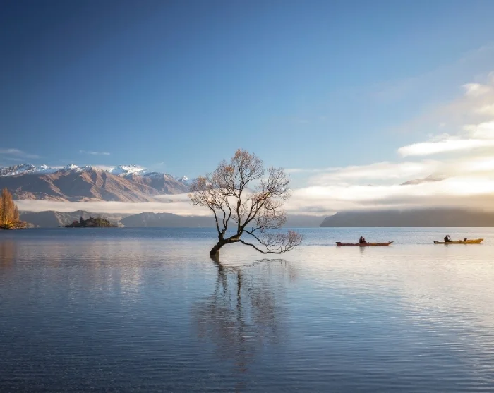 Wenn Sie sich für die wunderschöne Crown Range Road entscheiden, empfiehlt sich eine Pause am historischen Cardrona Hotel, in dem sich eines der ältesten und bekanntesten Pubs Neuseelands befindet. Ebenfalls beliebt ist ein Halt in Wanaka – die berühmte Baum-Silhouette im See, bekannt als That Wanaka Tree, zieht viele Besucher an. Die Stadt lädt zudem mit einer charmanten Uferpromenade und ausgezeichneten Cafés zu einer entspannten Pause ein.