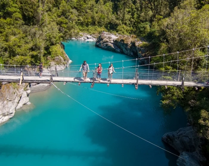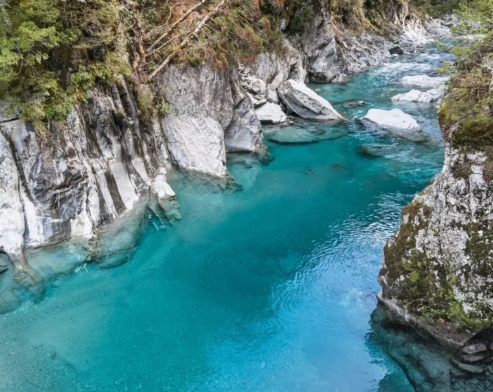 Auf Ihrem Weg durchqueren Sie den Mount Aspiring Nationalpark. Hier lohnt sich ein kurzer Spaziergang auf dem Blue Pools Track, der Sie durch einen Buchenwald zu glasklaren, türkisblauen Wasserbecken führt. Ein Stück weiter können Sie an den Thunder Creek Falls – einem 28 Meter hohen Wasserfall, umgeben von dichtem Wald – einen tollen Fotostopp einlegen.