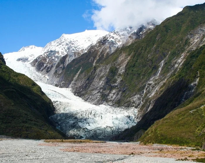 Wie viele Gletscher weltweit hat sich auch der Franz-Josef-Gletscher durch den Klimawandel stark zurückgezogen, weshalb es nicht mehr möglich ist, direkt vom Talboden aus auf das Eis zu gelangen. Sie können ihn jedoch weiterhin aus nächster Nähe von Aussichtspunkten aus oder aus der Luft bei einem Hubschrauberrundflug erleben.