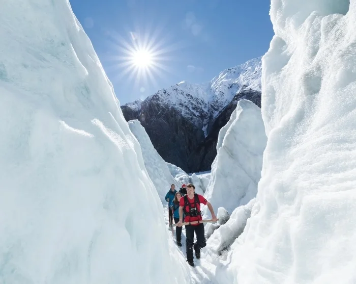 Der Franz-Josef-Gletscher wurde über Zehntausende von Jahren geformt – sein Ursprung liegt in Schnee, der sich hoch oben in den Bergen gesammelt und mit der Zeit zu festem Eis verdichtet hat. Der Gletscher trägt auch den Māori-Namen Kā Roimata o Hine Hukatere, was so viel bedeutet wie „Hine Hukateres Tränen“. Einer Legende nach verlor Hine Hukatere ihren Geliebten in den Bergen, und ihre Tränen froren zu dem Gletscher, den Sie heute sehen können.