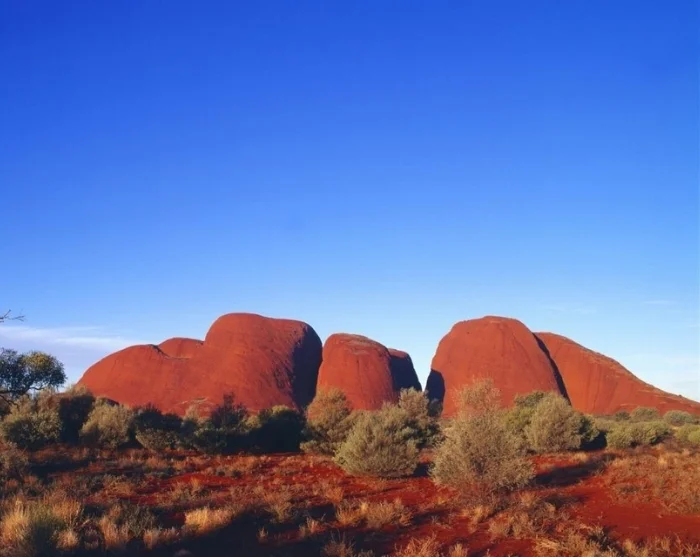 Ihre Reise geht weiter von Uluru nach Kata Tjuta, das etwa 50 Kilometer westlich liegt. Der Name bedeutet „viele Köpfe“ und bezieht sich auf die 36 abgerundeten Felskuppen, die eindrucksvoll aus der Ebene aufragen. Für das Volk der Anangu ist dieses Gebiet heilig, doch glücklicherweise sind einige besonders spektakuläre Bereiche für Besucher zugänglich. Ein beliebter Spaziergang führt durch die Walpa-Schlucht, wo Ihr Guide Ihnen sowohl die faszinierende Geologie als auch die tiefe Verbindung der lokalen indigenen Bevölkerung zu diesem besonderen Ort näherbringt.