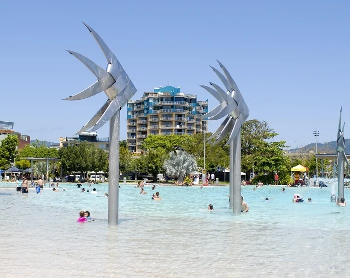 Die Gegensätze könnten kaum größer sein: Nach Tagen in der roten Wüste erreichen Sie nun den tropischen Norden, und von Cairns aus haben Sie Zugang sowohl zum ältesten Regenwald der Welt als auch zum beeindruckenden Great Barrier Reef. Die Stadt präsentiert sich gemütlich und entspannt mit einer guten Auswahl an Geschäften und Restaurants. Sehr zu empfehlen ist ein Besuch der künstlich angelegten Lagune im Herzen der Stadt. Hier können Sie ein erfrischendes Bad genießen – ein beliebter Treffpunkt für Einheimische und Besucher gleichermaßen.