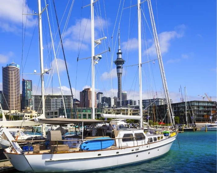 Der letzte Halt der Stadtrundfahrt ist die Westhaven Marina, einer der größten Yachthäfen der südlichen Hemisphäre, wo Aucklands Skyline und die Harbour Bridge eine beeindruckende Kulisse für die zahlreichen Bootsmasten bilden.