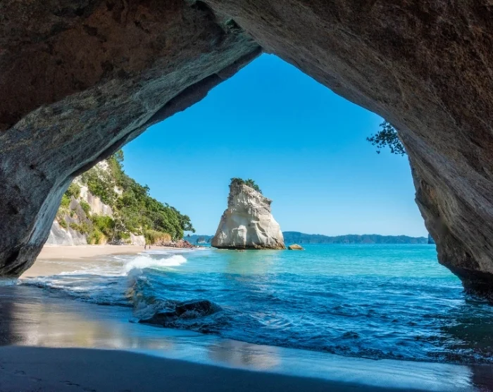Zusätzlich verfügt Auckland über ein hervorragend ausgebautes Fährnetz, das die Stadt mit benachbarten Inseln verbindet. Sehr beliebt ist dabei Waiheke Island (Te Motu-arai-roa) mit malerischen Stränden und renommierten Weingütern – Sie können Ihre Fahrt dorthin individuell gestalten oder eine geführte Tour samt Mittagessen im Weingut buchen. Alternativ empfiehlt sich ein Tagesausflug zur Coromandel-Halbinsel (Te Tara-o-te-Ika-a-Māui). Dort gibt es wunderschöne Landschaften.