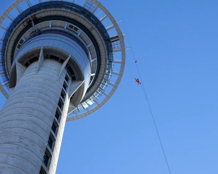 Wenn Sie Lust auf Nervenkitzel haben, erwarten Sie im Sky Tower spannende Erlebnisse wie der SkyWalk, bei dem Sie auf einer schmalen Plattform in fast 200 Metern Höhe rund um den Turm laufen, oder der SkyJump – ein kontrollierter Sturz in die Tiefe vom Turm.