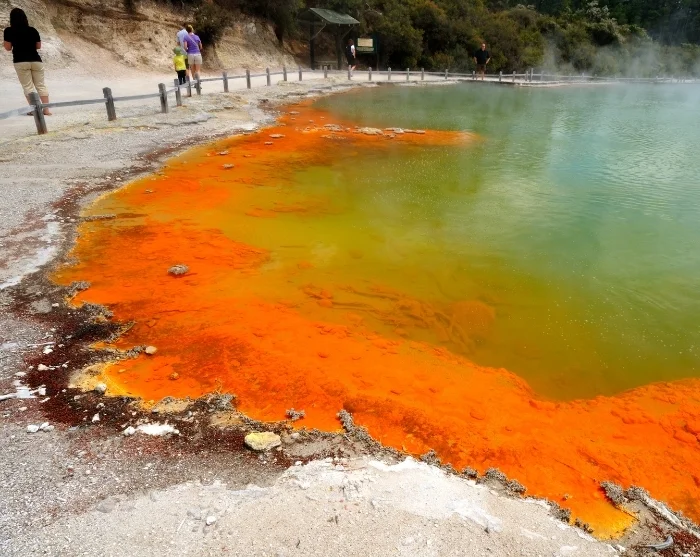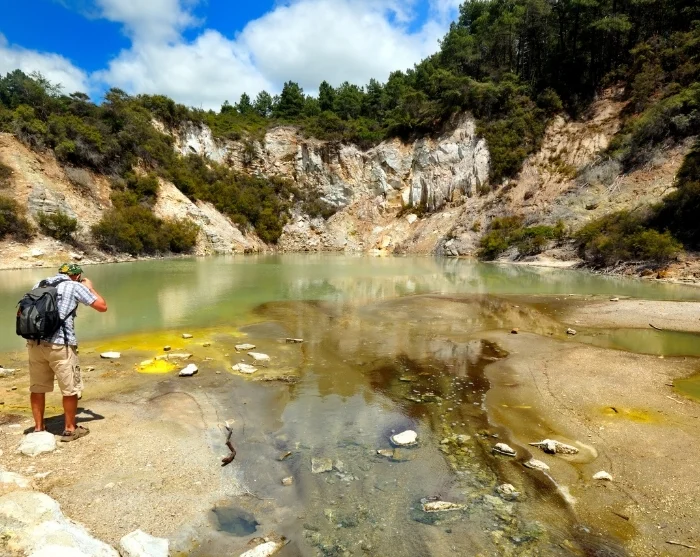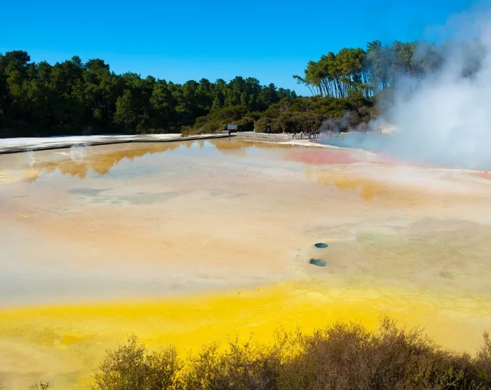 Unterwegs bleibt Zeit für Mittagessen und Kaffeepausen (auf eigene Kosten), bevor die Fahrt weiter nach Wai-O-Tapu geht. Hier haben die Kräfte der Natur eine farbenfrohe und faszinierende geothermische Landschaft geschaffen, darunter der Champagne Pool, Kraterseen und Schwefeldämpfe, die aus der Erde aufsteigen. Es fühlt sich fast so an, als befände man sich auf einem anderen Planeten, und der charakteristische Geruch von Schwefel gehört zum Erlebnis dazu. Später am Tag erreichen Sie Rotorua (Te Rotorua-nui-a-Kahumatamomoe), wo der Abend Ihnen ganz zur freien Verfügung steht, um die Stadt in Ihrem eigenen Tempo zu erkunden.