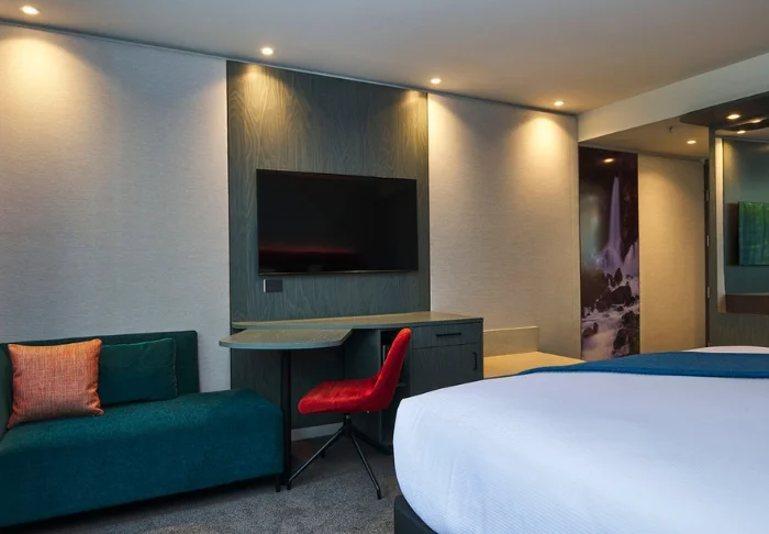 Das Hotel ist stilvoll und modern, komfortabel und hochwertig eingerichtet. Jedes der 88 Zimmer verfügt über große Fenster und viel Tageslicht. Die Zimmer sind entweder mit Kingsize Doppelbett oder zwei Einzelbetten eingerichtet und verfügen über ein eigenes Badezimmer, Klimatisierung, Schreibtisch, Safe, Bügeleisen und -brett und Smart-TV. Außerdem ist das WLAN kostenlos, es gibt einen Wasserkocher wie auch kostenlosen Tee, Kaffee und warmen Kakao.