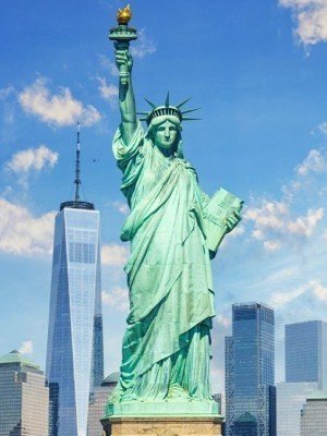 Die 93 Meter hohe Statue wurde 1886 von Frankreich als Geschenk zur Feier der Unabhängigkeit der USA übergeben. Seitdem hat die Freiheitsstatue Einwanderer im Hafen von New York willkommen geheißen und bleibt eines der weltweit bekanntesten Wahrzeichen.