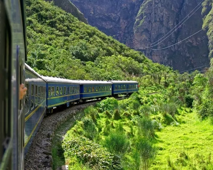 Heute fahren Sie mit dem Zug in die kleine Stadt Aguas Calientes, die sich am Fuße des Komplexes der Inka-Ruinen Machu Picchu befindet. Lehnen Sie sich zurück und genießen Sie die Landschaft, während sich der Zug durch das Tal entlang des Flusses Urubamba mit Bergen auf beiden Seiten windet. Die wunderschöne Zugfahrt dauert ca. 1,5–2 Stunden.