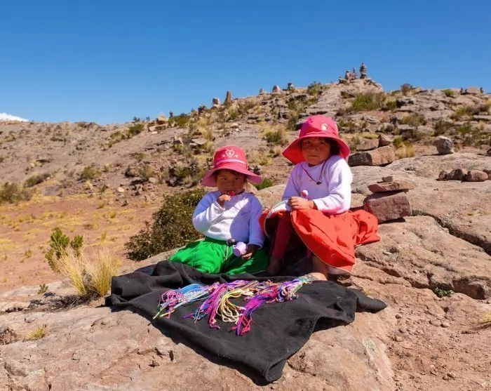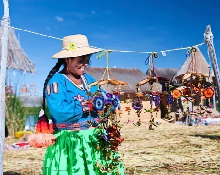 Danach fahren Sie mit dem Boot weiter zur friedlichen Insel Taquile, die besonders für ihr buntes Kunsthandwerk und ihre „strickenden Männer“ bekannt ist. Auf dieser Insel stricken nämlich die Männer. Und das können sie wirklich gut! Das Muster an der Strickhaube eines Mannes, die Chullo genannt wird, zeigt nicht nur seine Kreativität, sondern auch seinen Zivilstand. Die Frauen übernehmen das Spinnen des Garnes und das Weben. Es sind auch die Frauen, die wunderschöne Gürtel für die Kleider der Männer weben.