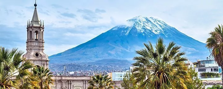 Arequipa liegt beinahe 2.400 Meter über dem Meeresspiegel in den wunderschönen Anden, mit herrlicher Aussicht auf die Vulkane Misti (5.822 m), Chachani (6.057 m) und Picchu Picchu (5.699 m). Die Stadt heißt auch „Die weiße Stadt“, da die meisten Häuser aus vulkanischem Gestein bestehen.
