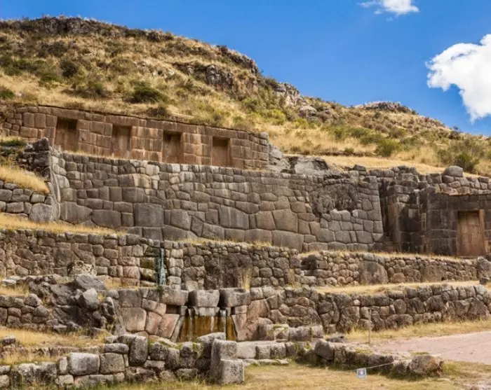 Weiter geht es zum Kenko, einem Heiligtum und Festplatz der Inkas mit einem riesigen, zerklüfteten Stein und einer Höhle. Hier wurden früher Götter angebetet. Etwas weiter entfernt steht die kleine Bergfestung Puka Pukara, die vermutlich einst zur Bewachung des Heiligen Tals diente. Dort kann man die in Stein gehauenen Terrassen, Treppen, Tunnel und Türme näher erkunden. Im Norden findet sich das Wasserheiligtum Tombomachay, das einst als Bad für die Herrscher der Inkas diente. Es ist ein bauliches Meisterwert, durch das immer noch Wasser fließt.
