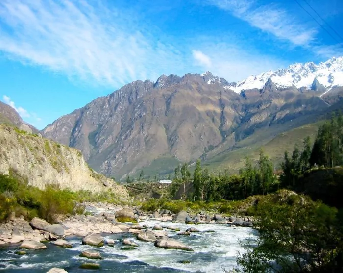 Nach dem Mittagessen in der Nähe von Lucmabamba werden Sie von einem Auto zum Fluss Urubamba und einem Wasserkraftwerk gefahren, wo Sie in einem Zug einsteigen und zur Stadt Aguas Calientes fahren. Die Transportzeit beträgt ca. 2 Stunden.