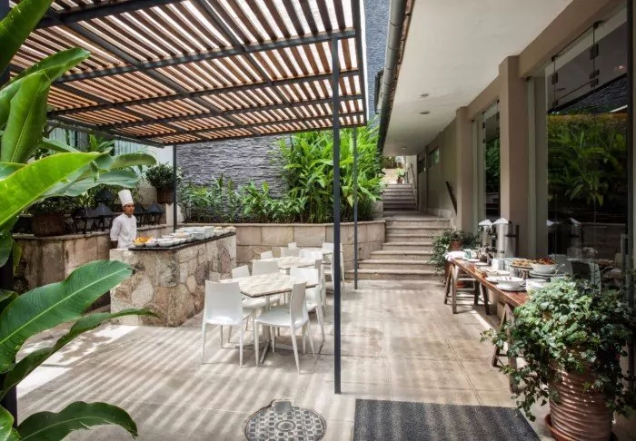 Sie können den Tag mit einem herrlichen Frühstücksbuffet beginnen, das im Restaurant des Hotels serviert wird. Das Buffet ist vielfältig. Geboten werden regionale Rohwaren und frische Speisen aus der peruanischen und internationalen Küche. Genießen Sie das Frühstück auf der beliebten Innenterrasse des Hotels, die von „grünen Wänden“, die von Pflanzen bewachsen sind, umgeben ist.