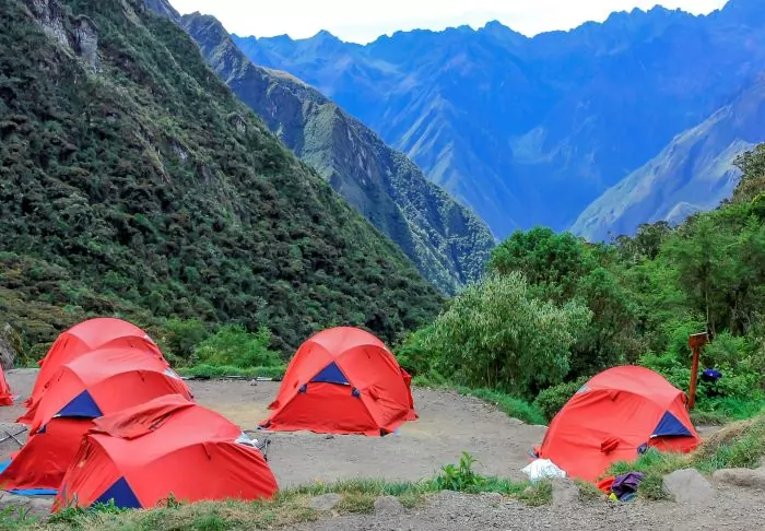 Auf dem Inka-Pfad nach Machu Picchu werden drei Nächte im Zelt verbracht. Sie schlafen auf guten Isomatten in 4-Mann-Zelten. Zwei Personen teilen sich jeweils ein Zelt, sodass für das Gepäck ausreichend Platz vorhanden ist. Die sanitären Bedingungen sind primitiv und unterwegs steht kein fließendes Wasser zur Verfügung. Die einzige Ausnahme ist die letzte Nacht, wo alle Gruppen in dem selben Lager übernachten. Hier kann man gegen eine Gebühr ein warmes Bad nehmen. Im letzten Lager gibt es auch einen kleinen Laden, wo man Getränke und Snacks kaufen kann.