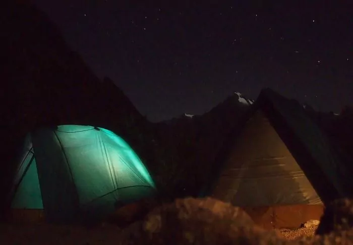 Bei der Salkantay-Wanderung übernachten Sie im Zelt in den Anden, und zwar in der Nähe der traditionellen peruanischen Dörfer. Sie schlafen in mitgebrachten Matratzen in geräumigen Zelten. Die sanitären Anlagen sind primitiv, während der Wanderung gibt es kein fließendes Wasser.