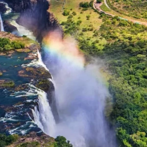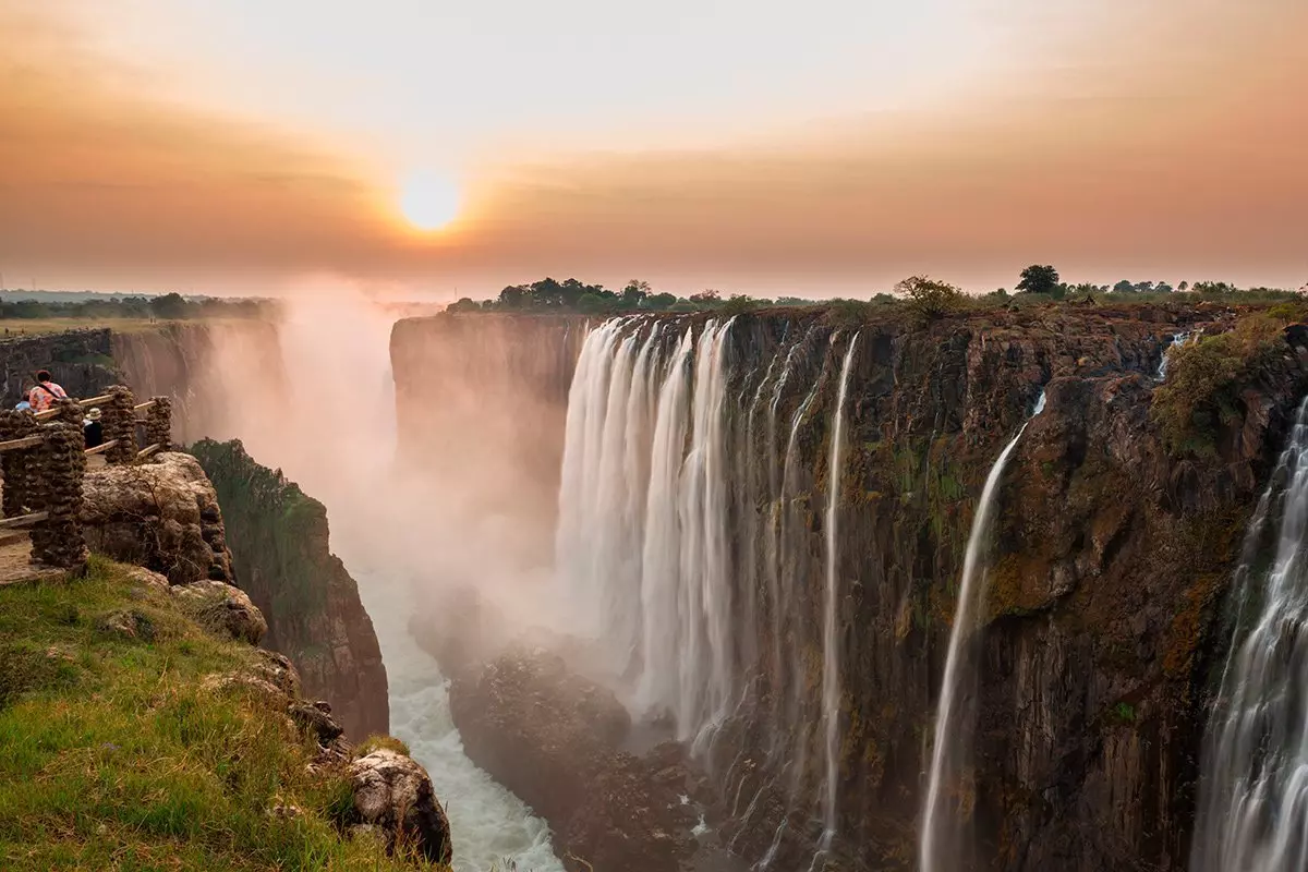 Die Wasserfälle erstrecken sich über 1,7 km. Jede Sekunde stürzen mehr als 1.000 Kubikmeter Wasser rund 100 Meter in die Tiefe. Noch dazu erheben sich die Wasserspritzer mehrere hundert Meter über den Wasserfällen in die Luft. Das ähnelt Rauch zum Verwechseln, weshalb die Einheimischen den Wasserfall auch „Mosi-oa-Tunya“ nennen, was übersetzt „Rauch, der donnert“ bedeutet.